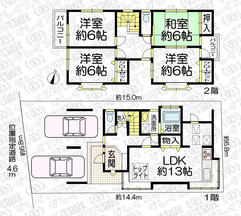 | 接道 | 南西 4.7m(幅員) 位置指定 位置指定有 6.8m(接面) |