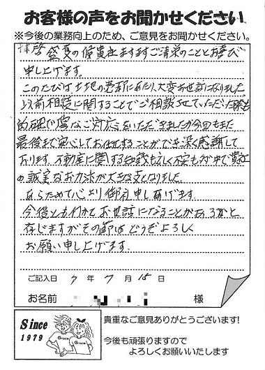 お客様の声|豊明市の不動産のご購入・ご売却は、グレイス不動産株式会社にお任せください!