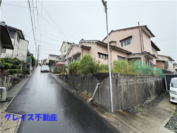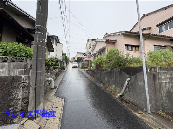 ※周辺は全体的に道が狭いですが、車通りが少ない地域です。車の運転が苦手な方や大きい車を所有されておられるお客様は、通る道によっては注意が必要です。 ※前面道路の幅員が4mに満たないため、セットバック(敷地後退)が必要です。 ※南側隣地の方が高い位置にあり、がけ条例がかかります。南側隣地擁壁の安全確認などは、建築会社さんにおたずねください。セットバックが必要になるので、