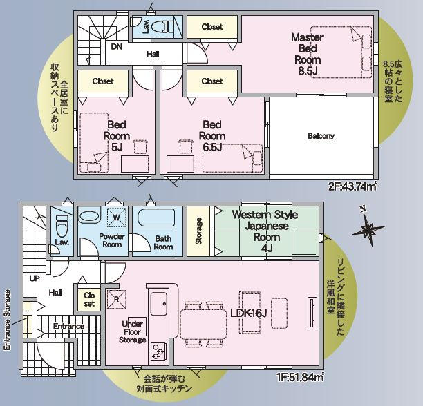 | 間取詳細 | (1階)LDK16、(1階)洋風和室4、(2階)洋8.5、(2階)洋6.5、(2階)洋5 |