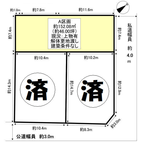 | 接道 | 北東 4m(幅員) 私道 7.4m(接面) |