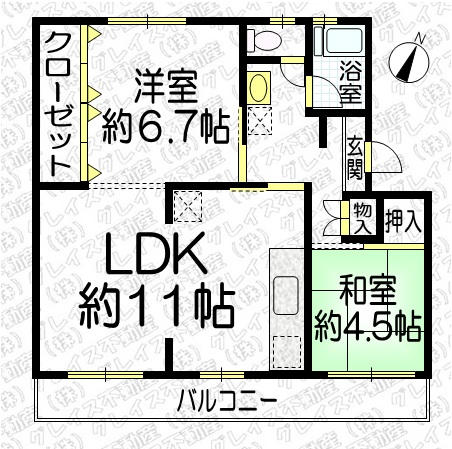| 間取詳細 | LDK11、洋6.7、和4.5 |