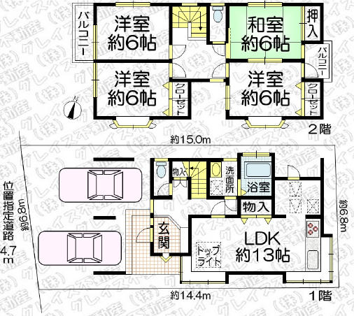 | 接道 | 南西 4.7m(幅員) 位置指定 位置指定有 6.8m(接面) |