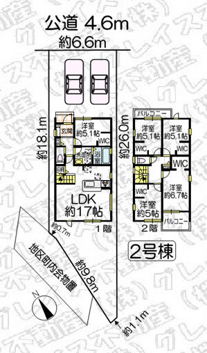 | 接道 | 北東 4.6m(幅員) 公道 6.6m(接面) | 地目 | 宅地 |