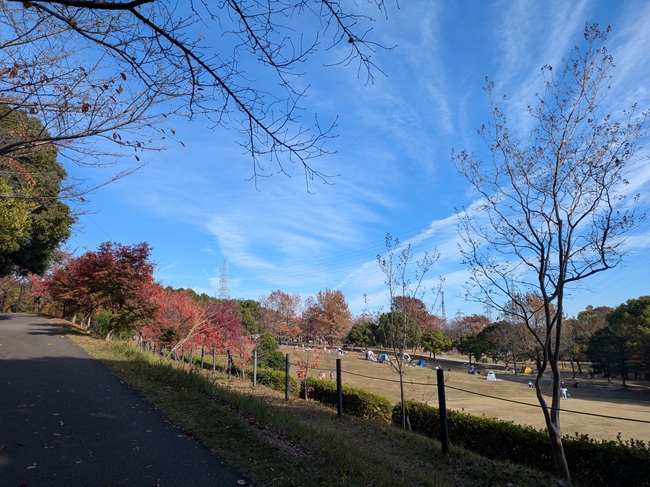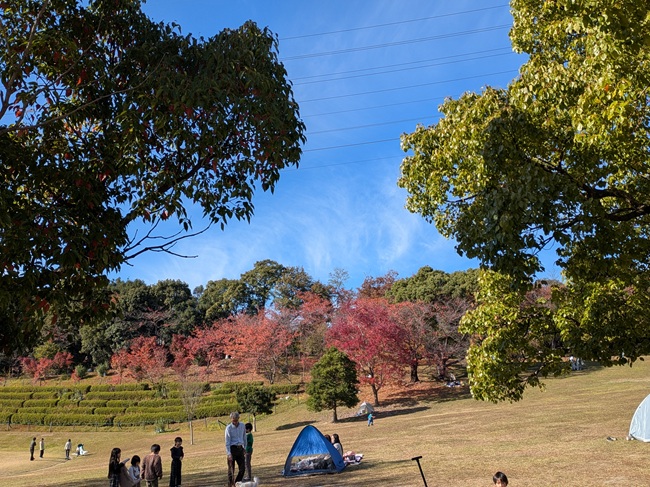 園内では紅葉が終わりかけでしたが、芝生の緑とのコントラストがとても綺麗でした。