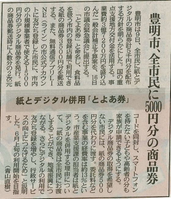 今月10日の中日新聞に、「とよあ券」の記事が掲載されました。