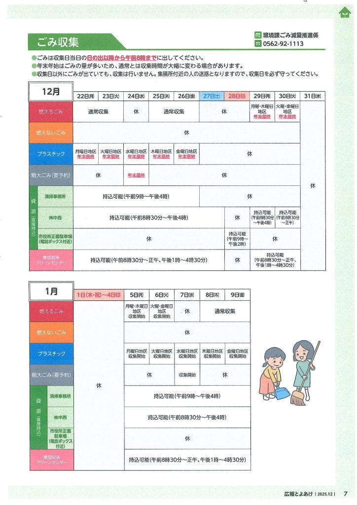 豊明市では、2025年12月31日(水)〜2026年1月4日(日)まで、すべてのゴミ収集がお休みになります。