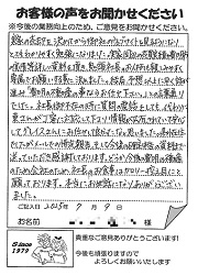 また【お客様の声】への掲載を、ご快諾くださったお客様、この場を借りてお礼を申し上げます。